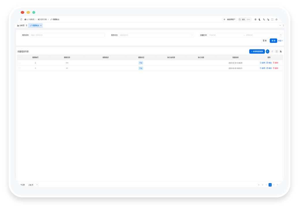 - 可视化条件触发与执行:支持阈值触发、时间触发、事件触发等50+触发条件,拖拽式编排执行流程,规则配置效率提升85%